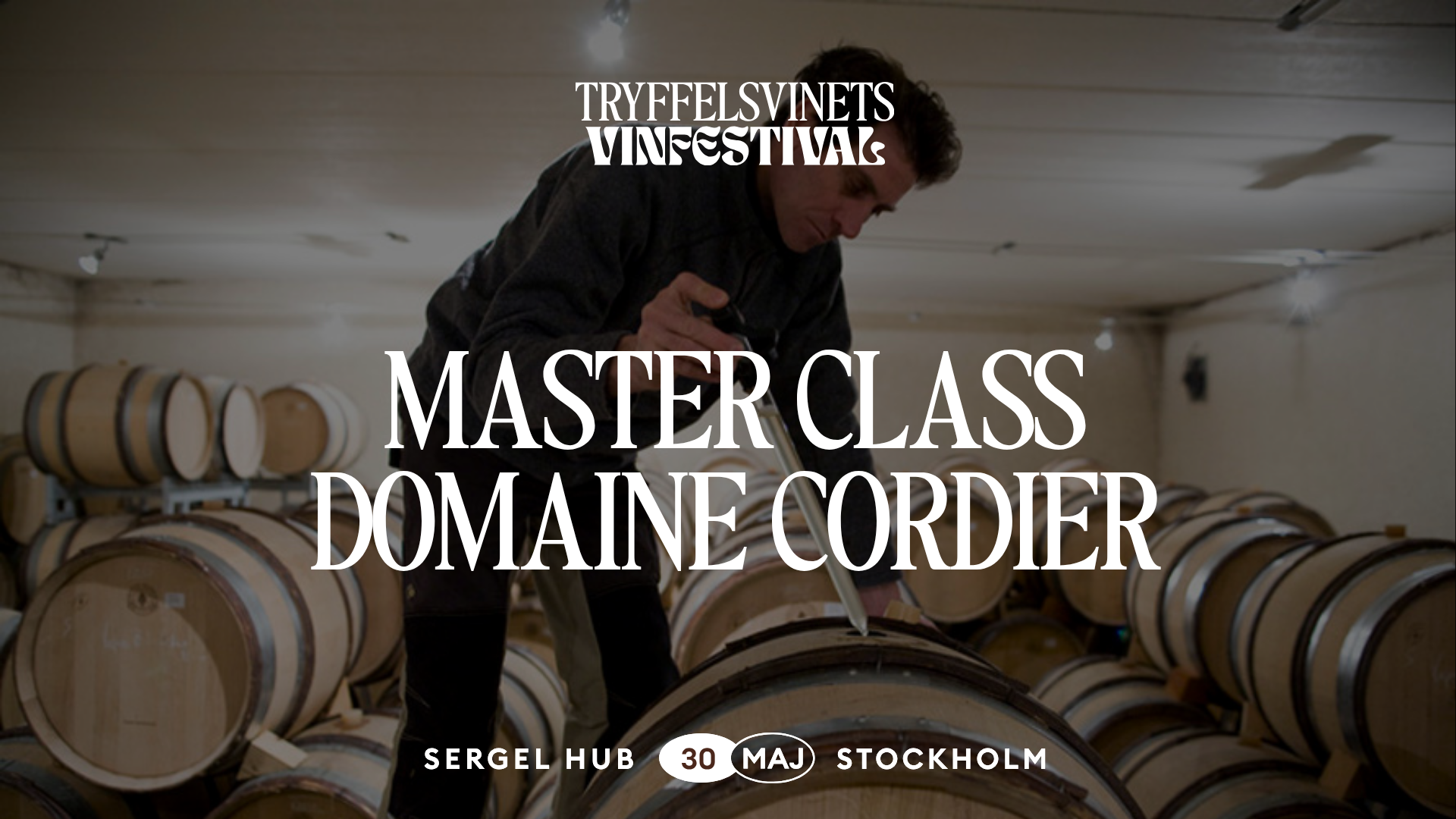 Vid denna master class kommer får vi under Christophe Cordier ledning ta del av hans djupa kunskaper och klokskaper under en spännande provning som visar upp hans stora bredd som vinmakare.