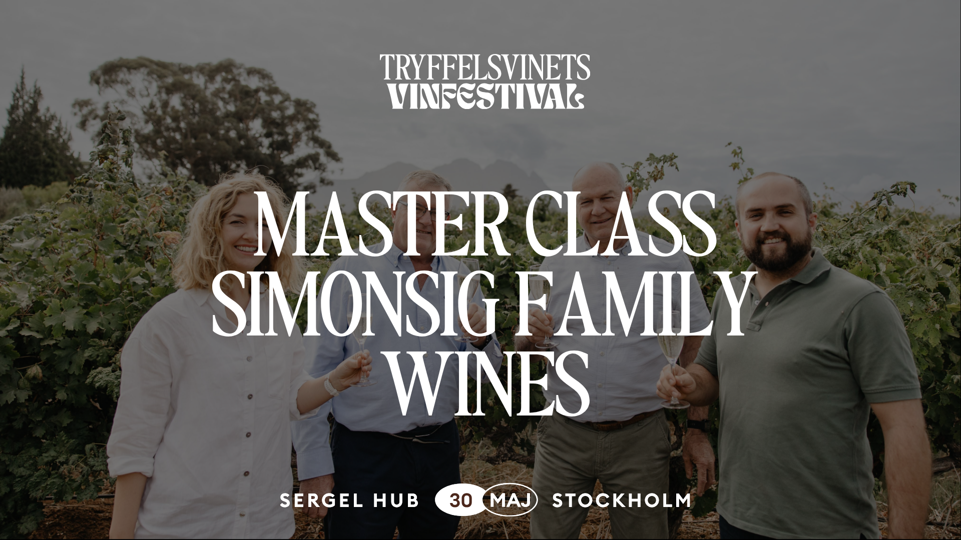 Välkommen på en exklusiv provning där vi provar viner från ett av Sydafrikas viktigaste namn, Simonsig Family Wines. Upptäck varför egendomen satt Sydafrika på kartan med sina lagringsbara viner. 195 kronor per biljett