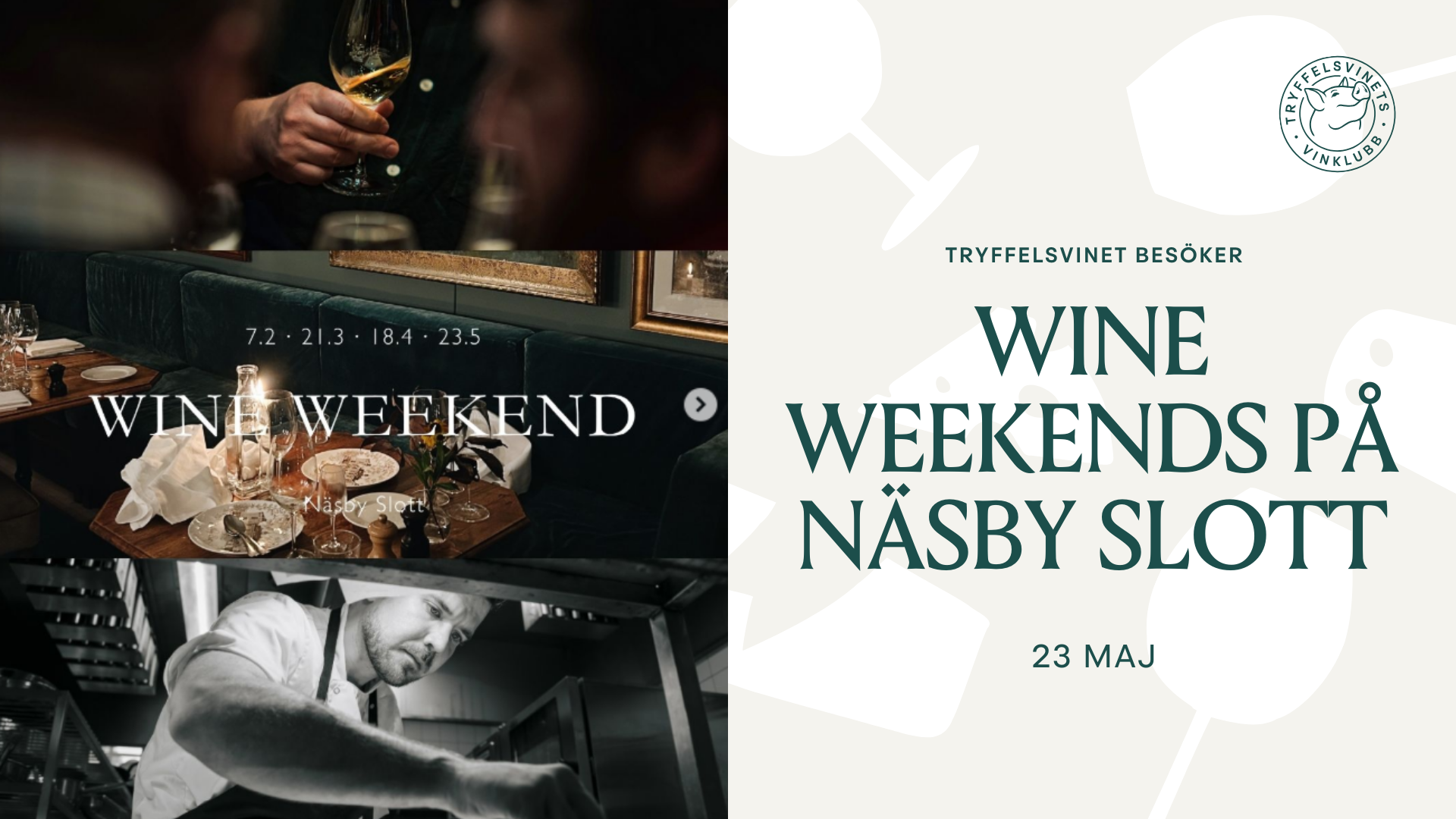 Under fyra helger under våren 2026 anordnar Näsby Slott exklusiva ”wine weekends” där fokus ligger på god mat och goda viner i slottsmiljö. Helgen inleds med en vinprovning som hålls av Tryffelsvinets egen Alexander Lundin och självklart får du som Vinklubbsmedlem en specialframtagen rabattkod. Läs mer här!