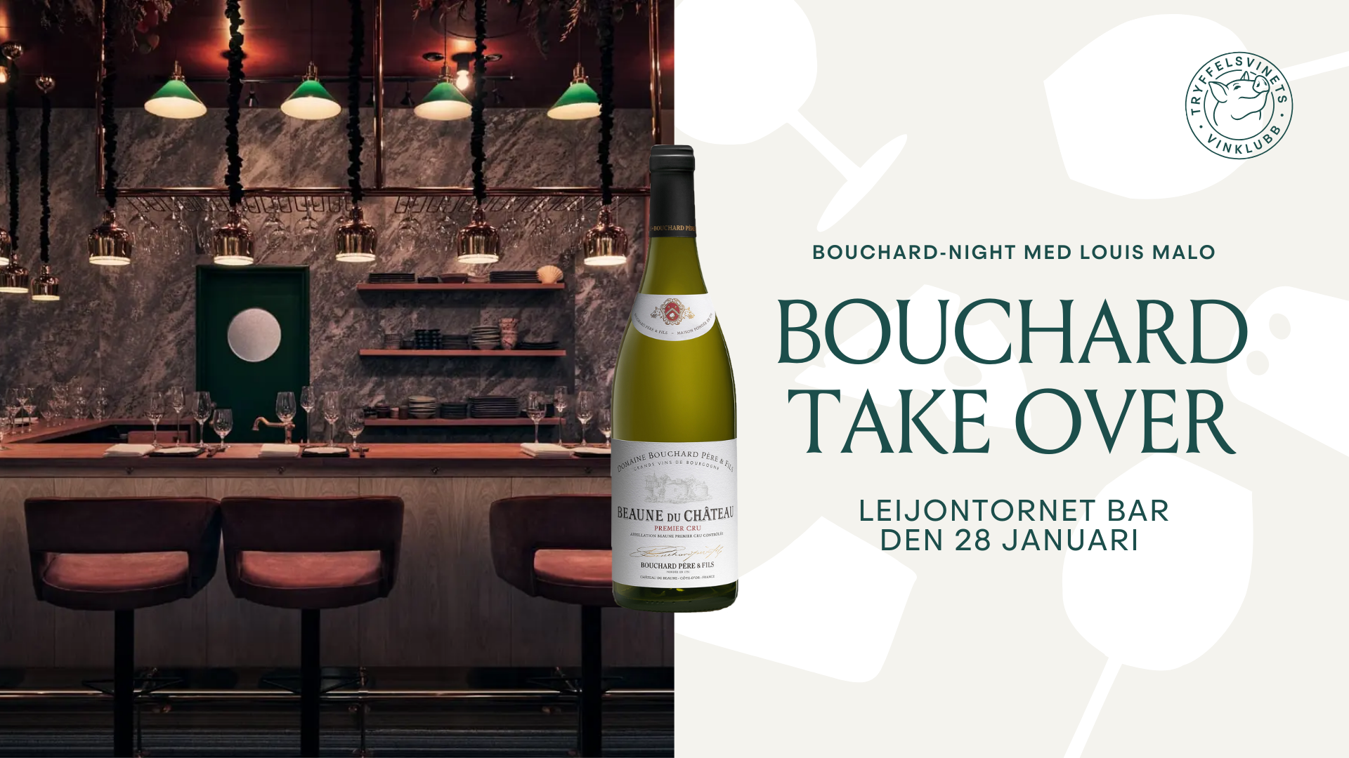Under kvällen den 28 januari finner du Boucjards Louis Malo samt Tryffelsvinets Margaux Barjou och Alex Lundin på plats bakom baren. Med sig har de tagit viner i världsklass där du kan välja och vraka i Bouchards fantastiska portfölj – på både glas och flaska. Självklart kan du beställa en god bit mat till!
