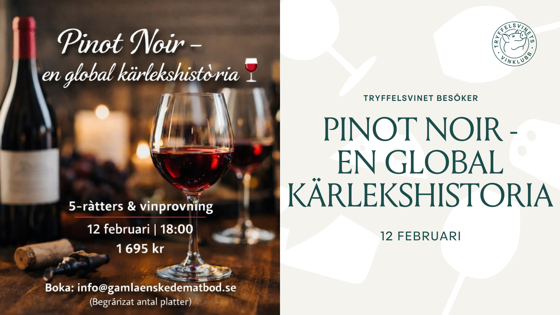 Välkommen på en oförglömlig middag med tillhörande vinprovning, där pinot noir står i centrum. Kvällen tar dig med på en resa genom hela världen, där samma druva uttrycker sig på olika sätt beroende på ursprung, klimat och vinmakarens handlag under ledning av Tryffelsvinets egen Alexander Lundin. Läs mer här!